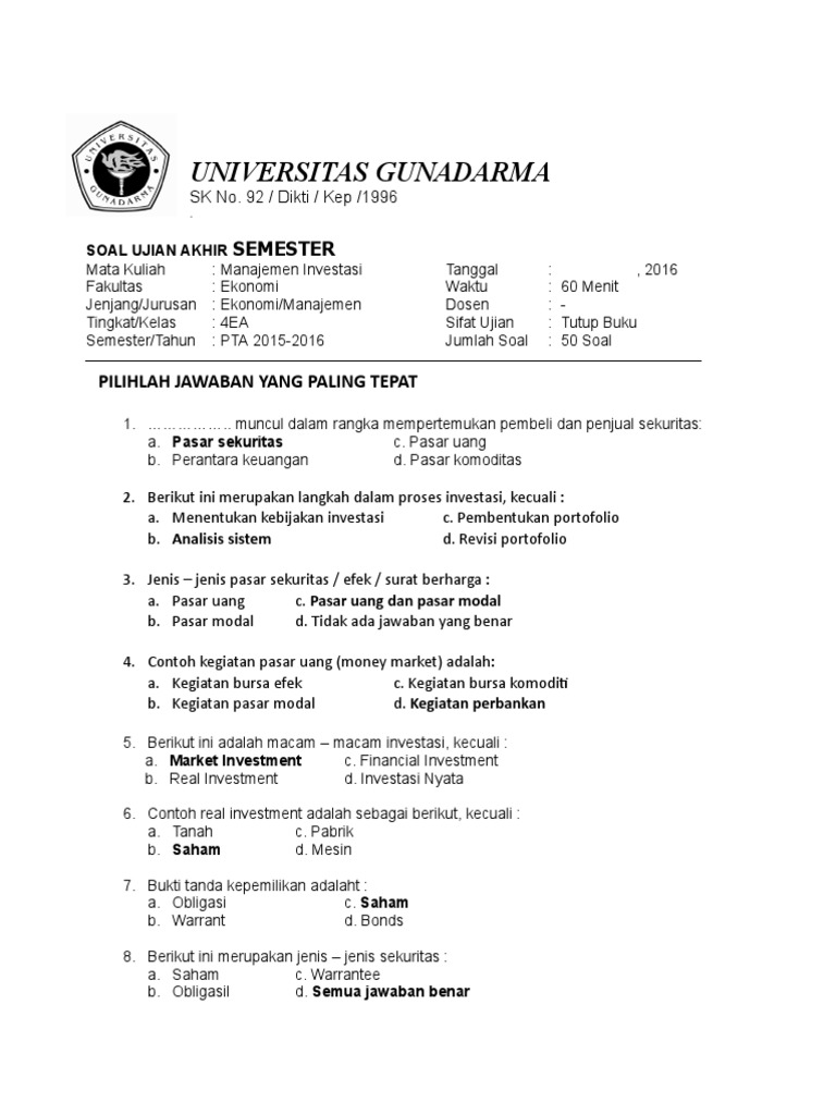 / Soal Dan Jawaban Uas Matematika Ekonomi Semester 1 / 86166 Soal Uas Matematika 2019 1ma Pdf Pdf Universitas Gunadarma Sk No 92 Dikti Kep 1996 Fakultas Ilmu Komputer Teknologi Industri Ekonomi Teknik Course Hero - Soal dan jawaban uas matematika ekonomi semester 1.
